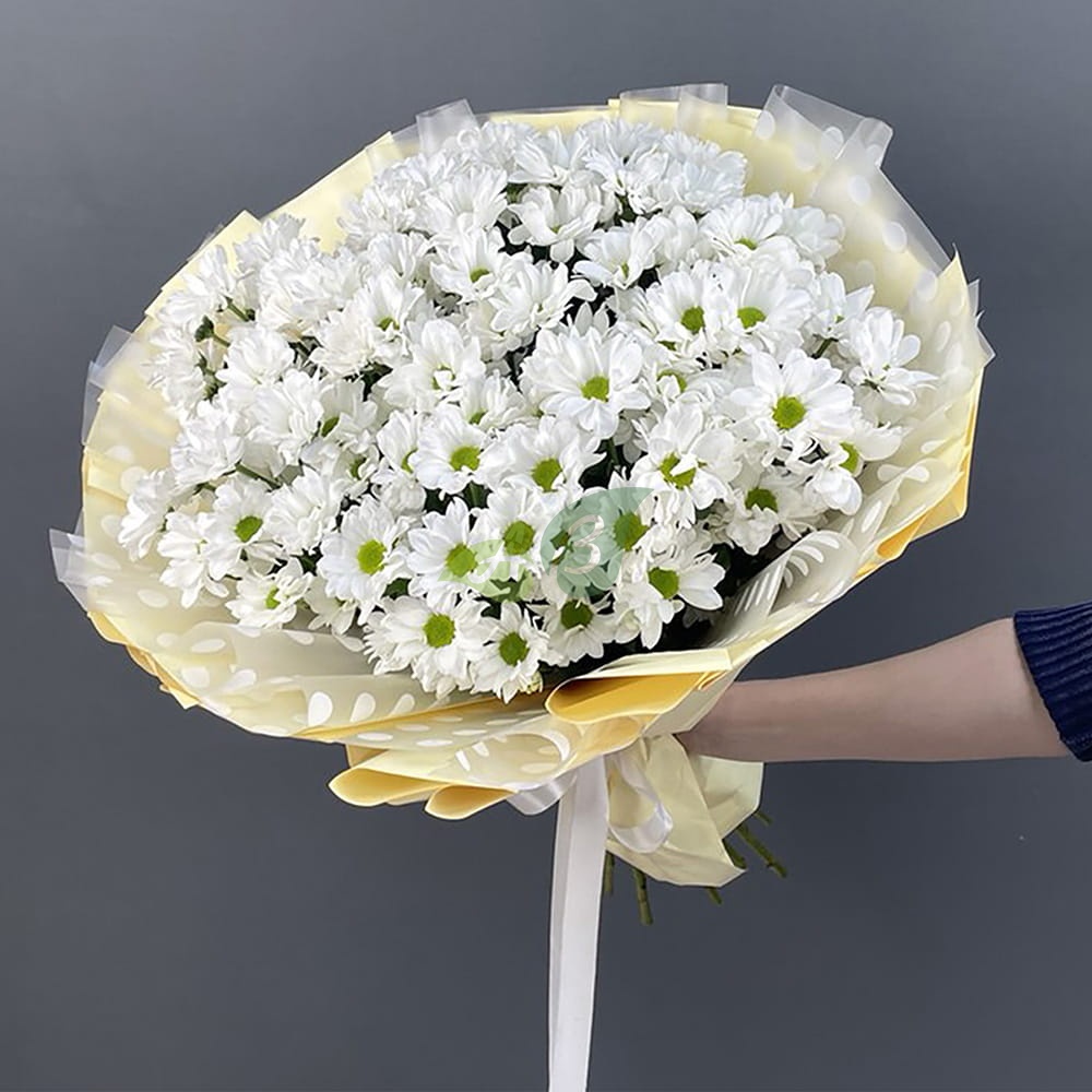 Состав и характеристики букета из белой хризантемы "Белый сон":