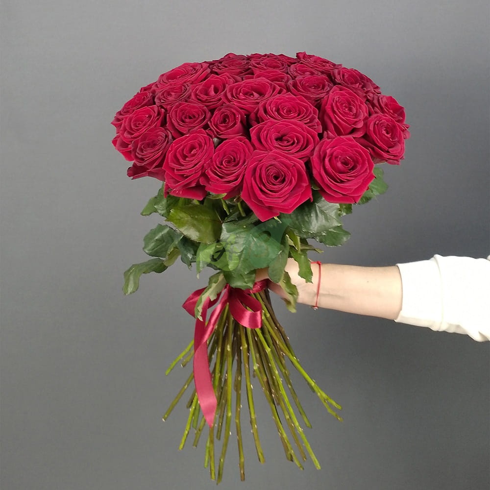 • Роза - 35 штук, цвет - красный, длина стебля - 60 см;