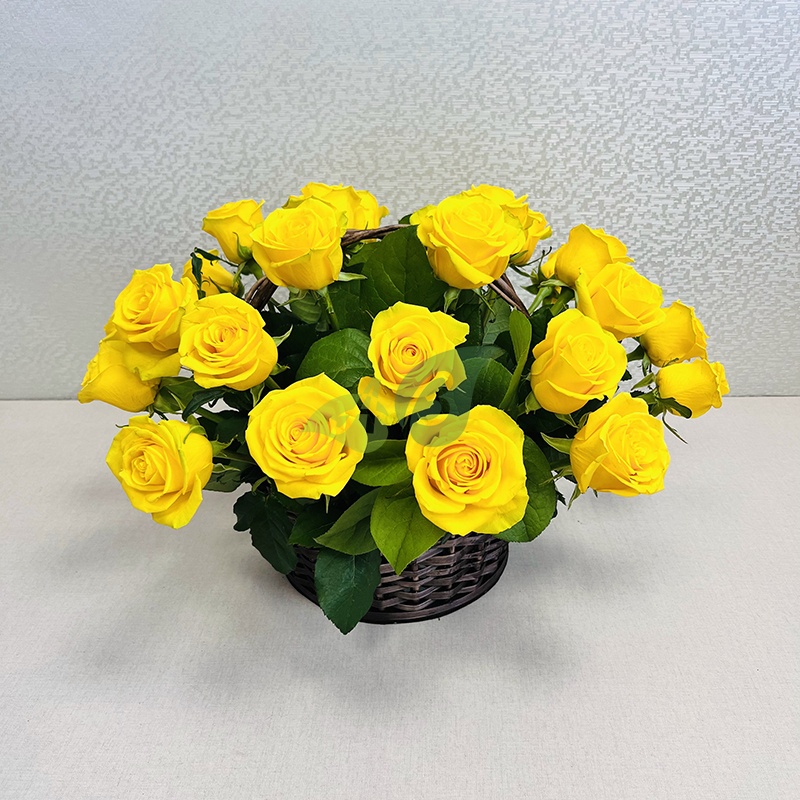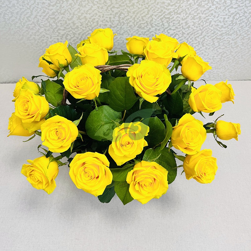 Обычным букетом уже никого не удивить. А вот цветы в корзине, особенно яркие розы – это незабываемый презент. Путь вас не смущает желтый цвет, это не символ разлуки, а символ процветания и достатка. Мы дополняем розы зеленью салала, тогда их солнечный цвет смотриться еще ярче и насыщеннее.